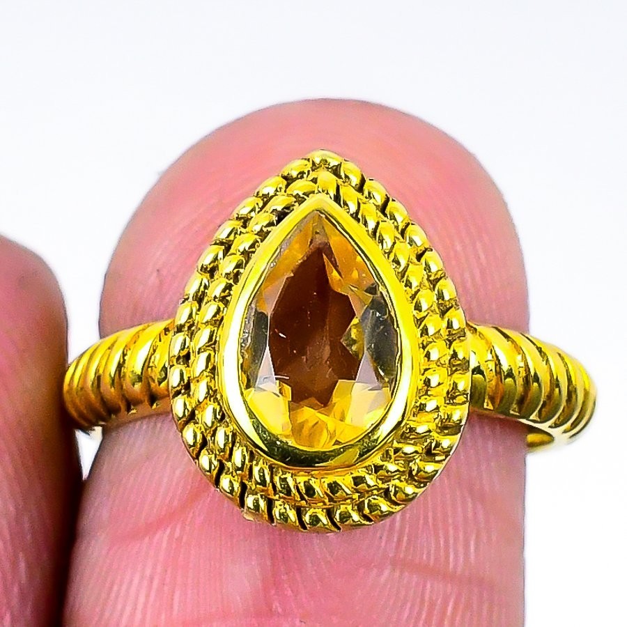 November Birth Citrine Stone Sterling Silver New Band Handmade Ring Jewelry US 7