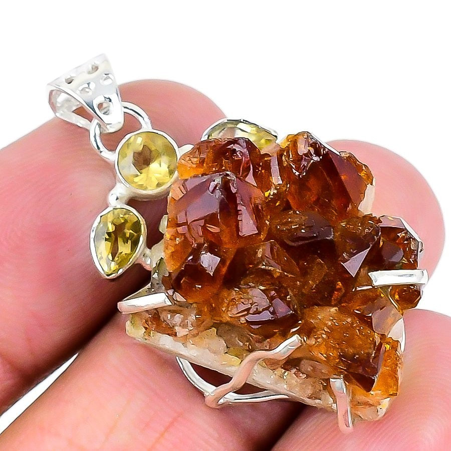 November Citrine Drusy Gemstone Sterling Silver Wedding Daughter Gift Pendant