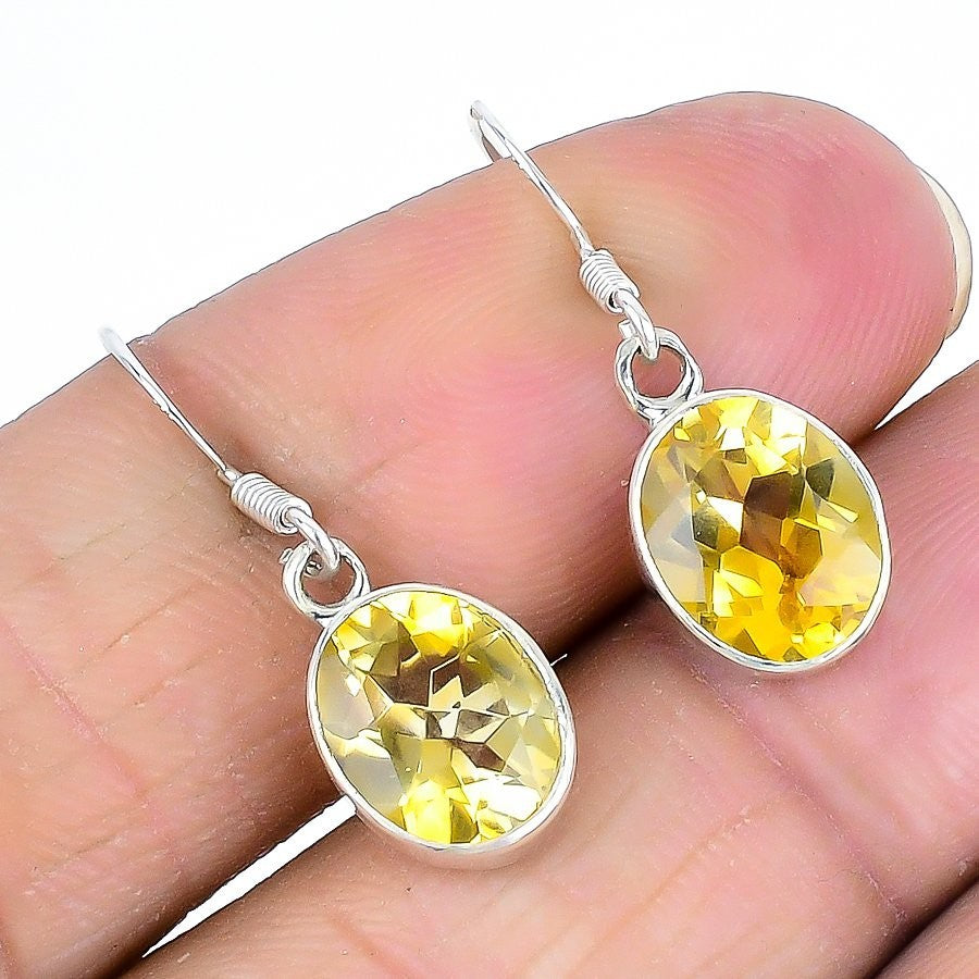 November Citrine Faceted Gemstone Sterling Silver New Drop Hook Earrings Jewelry
