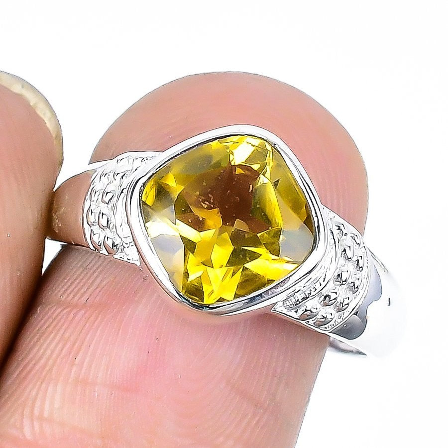 November Citrine Faceted Gemstone Sterling Silver Wedding Statement Ring Size 9