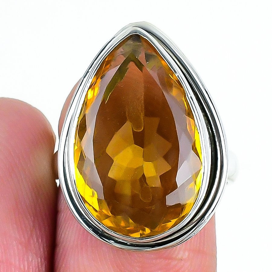 November Citrine Gemstone Handcrafted Stackable Wedding New Ring 925 Silver US 7
