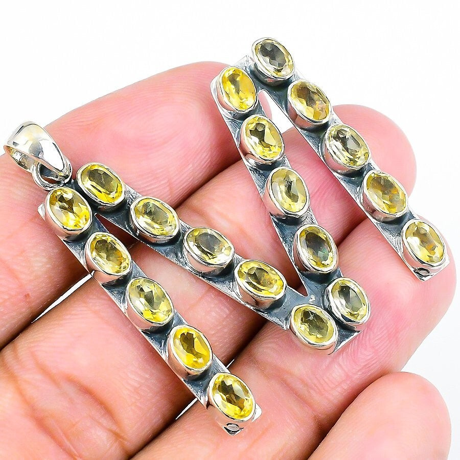 November Citrine Gemstone Solid Silver Unique Wife Handcrafted Ethnic Pendant