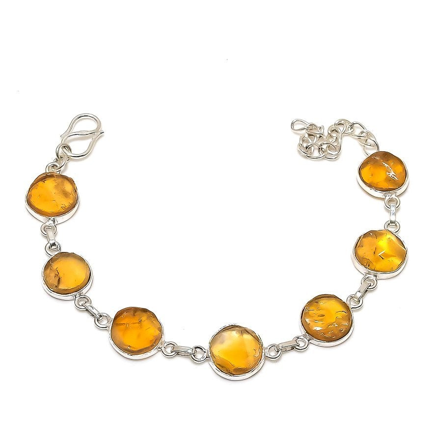 November Citrine Rough Stone Daughter Wedding Chain Unique Bracelet Solid Silver
