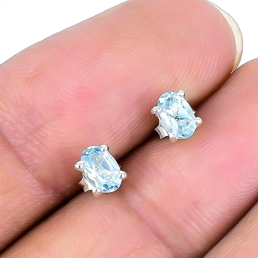 November Natural Aqua Topaz Solid Silver Stud Post Best Daughters Gift Earrings