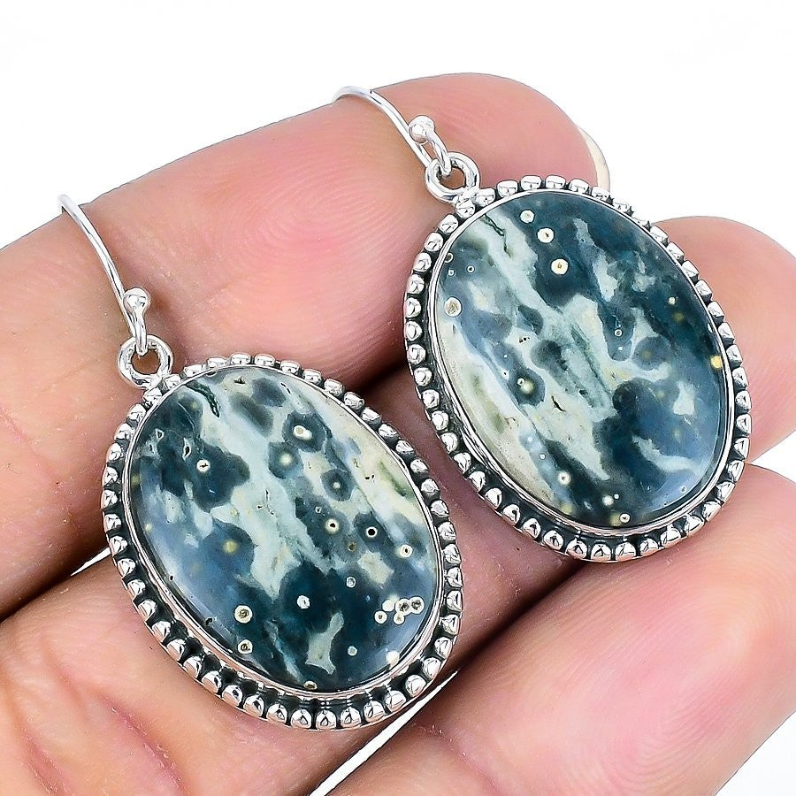 Ocean Jasper Gemstone New Wedding Dangling Wife Earrings Jewelry Sterling Silver