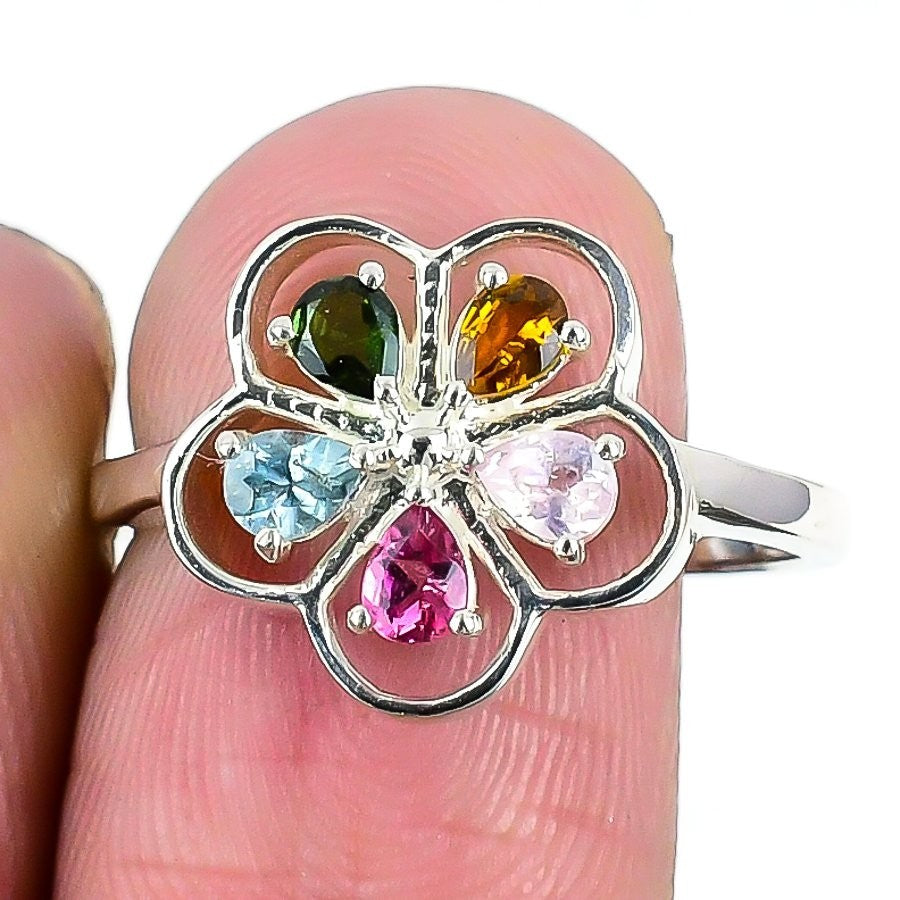 October Birth tourmaline Gemstone 925 Sterling Silver Wife Cluster Ring Jewelry