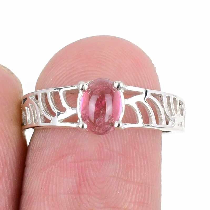October Natural Tourmaline 925 Solid Silver Cluster Artisan Ring Jewelry Size 7