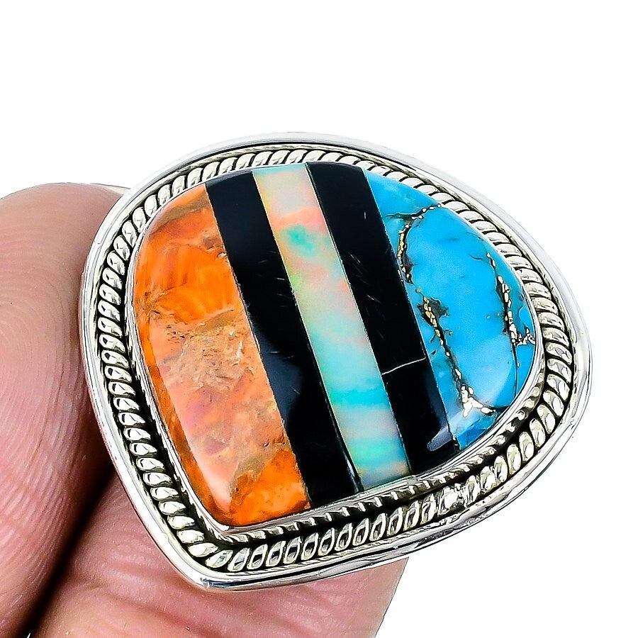 Opal Matrix Spiny Oyster Gemstone Solid Sterling Silver Statement Ring Jewelry