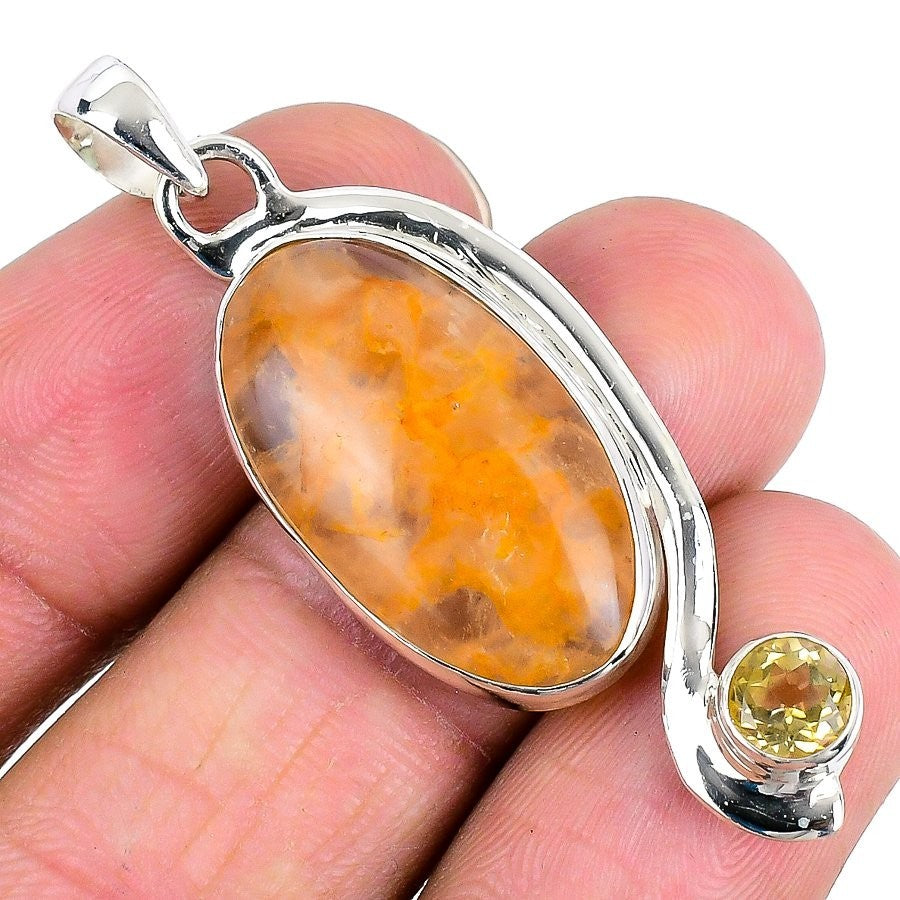 Orange Aventurine Stone Daughters Day Mother Bezel Pendant Jewelry Solid Silver