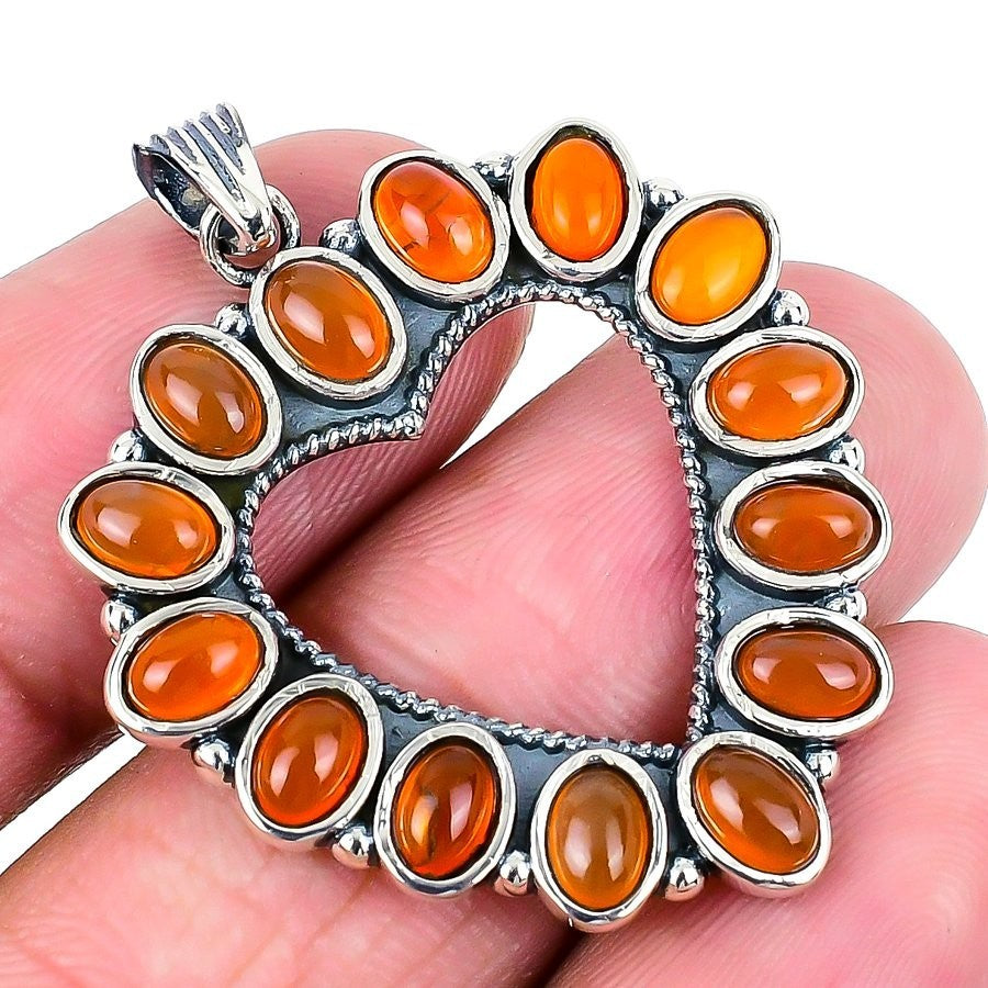 Orange Carnelian Gemstone 925 Solid Silver Wedding Friendship Day Wife Pendant