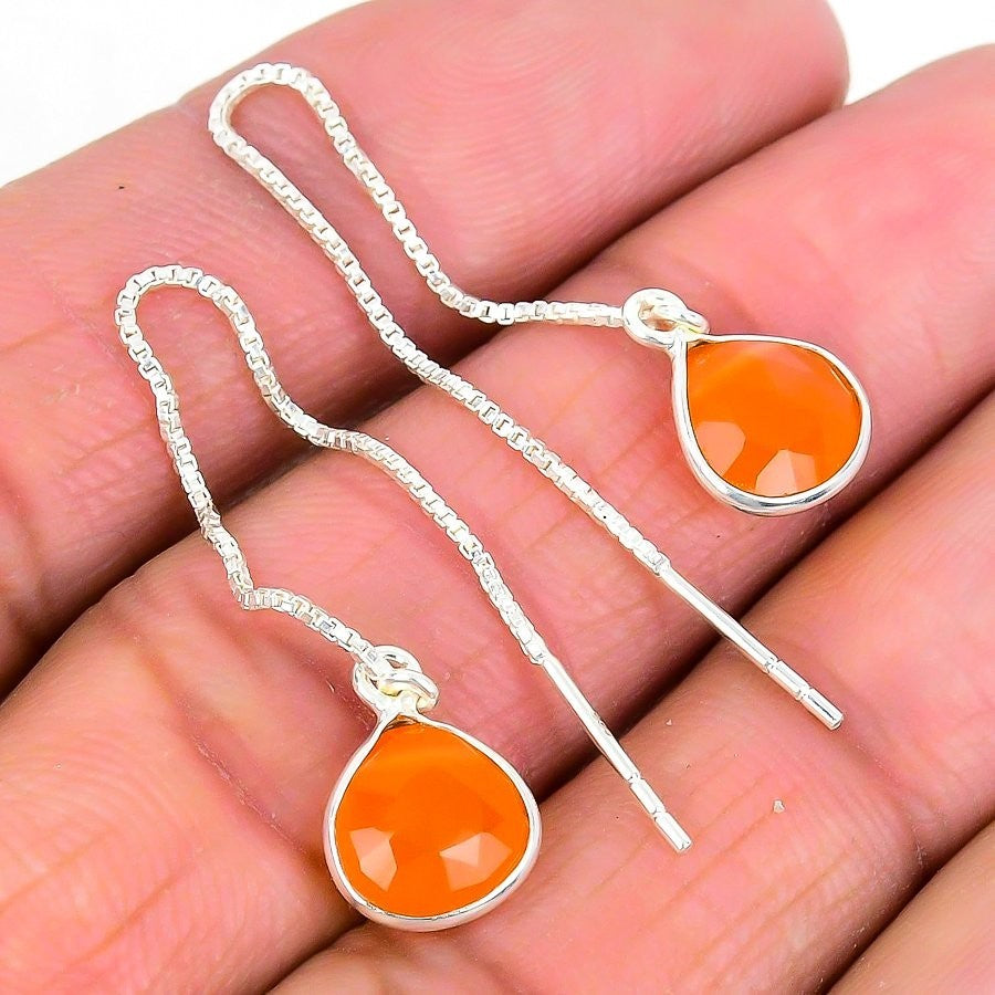 Orange Carnelian Gemstone 925 Sterling Silver Drop Dangle New Earrings Jewelry