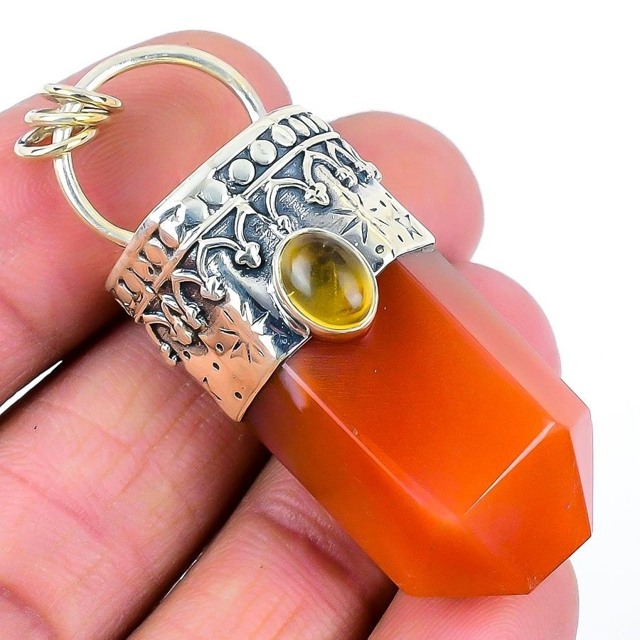 Orange Carnelian Gemstone Solid Silver Engagement Sister Birthday Ethnic Pendant