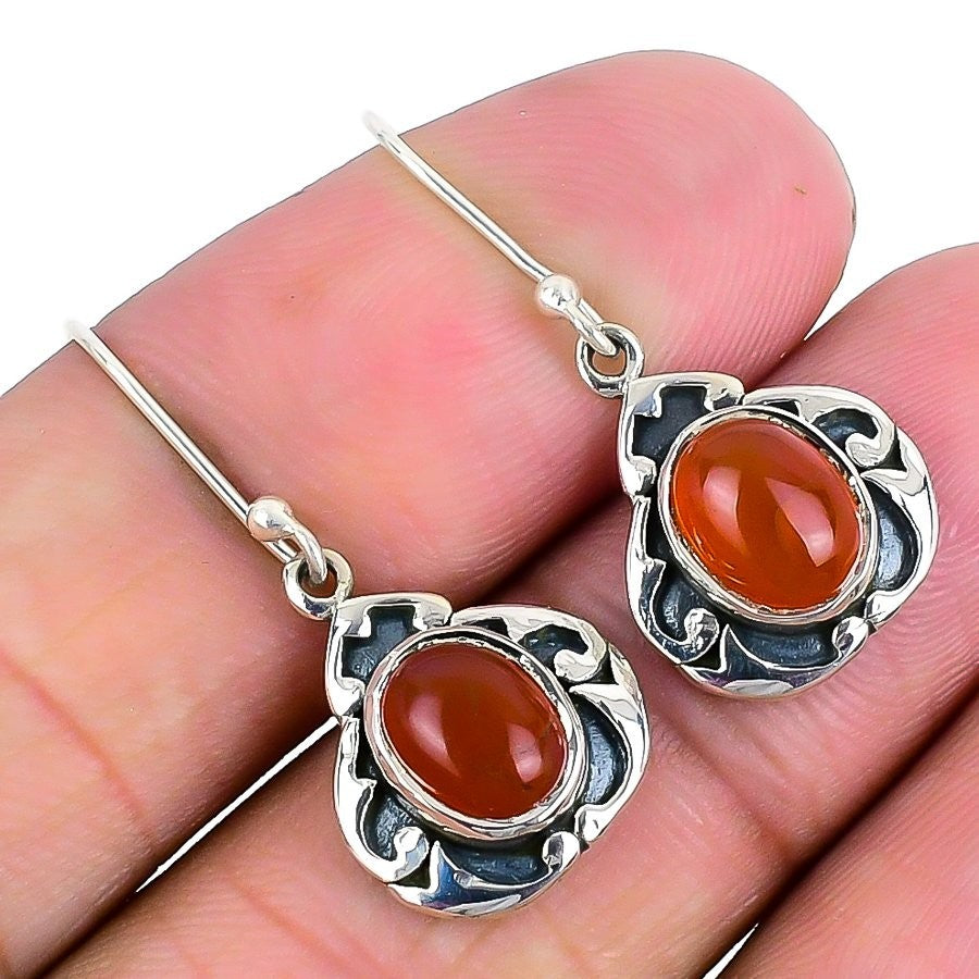 Elegant Orange Carnelian Gemstone Sterling Silver New Drop i