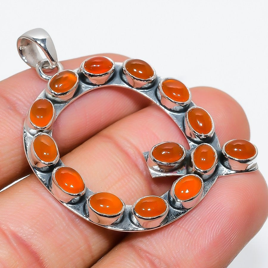 Orange Carnelian Stone Handmade Engagement Unique New Pendant Jewelry 925 Silver