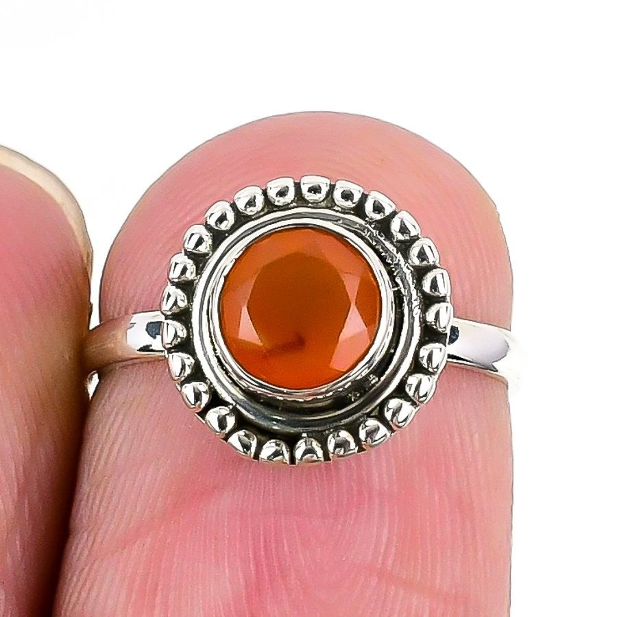 Orange Carnelian Stone Solid Silver Bezel Unique Statement Ring Jewelry Size 4.5