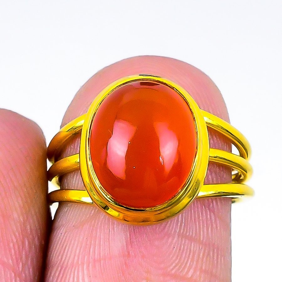 Orange Carnelian Stone Sterling Silver Band Sacral Chakra Ring Jewelry Size 6