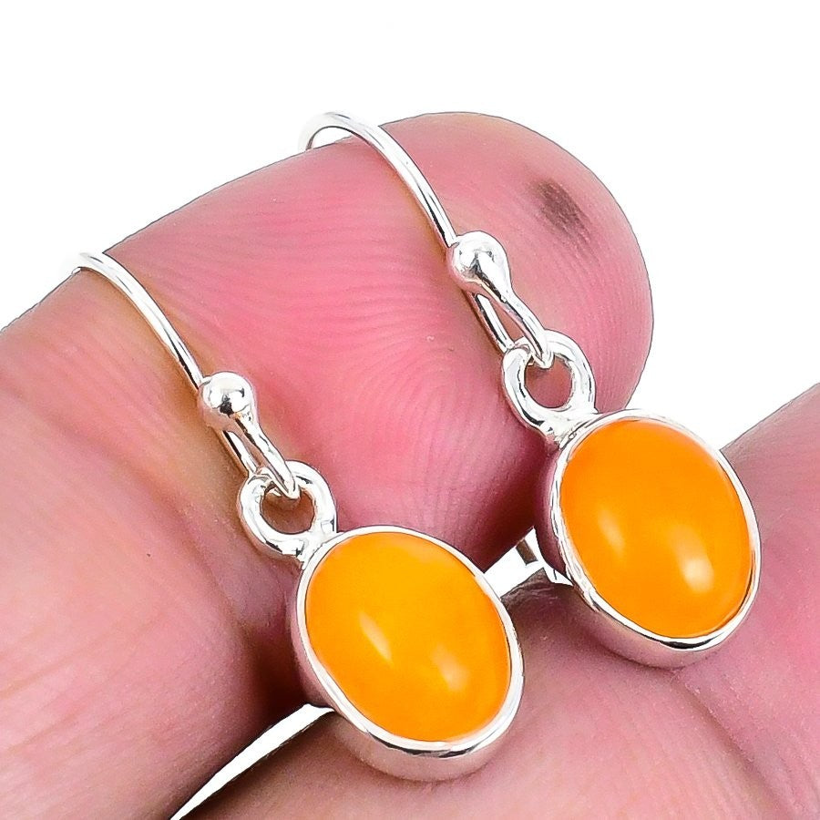 Orange Ethiopian Opal Gemstone Solid Silver Drop Dangle Daughter Gift Earrings