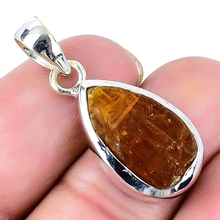 Orange Kyanite Gemstone 925 Sterling Silver Art Deco Boho Artisan Sister Pendant