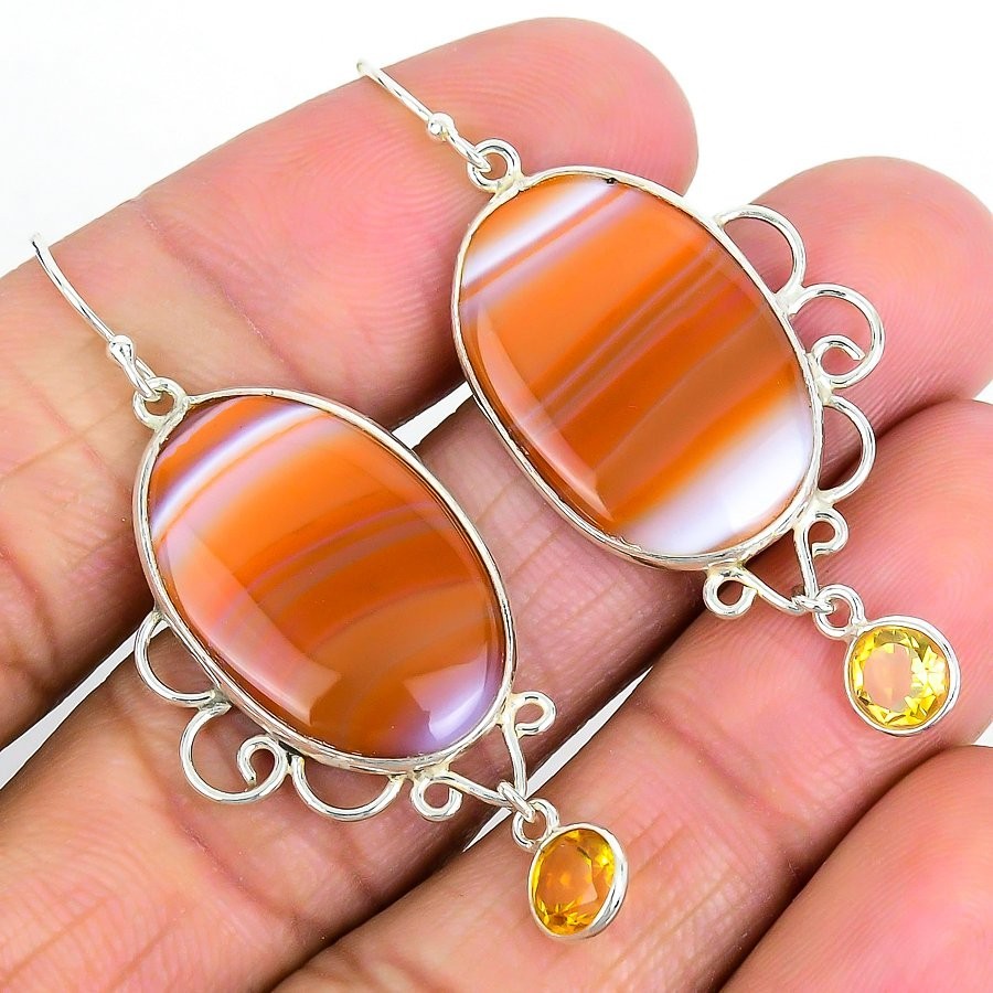 Orange Lace Agate Gemstone 925�Solid�Silver Engagement Hook Dangling Earrings