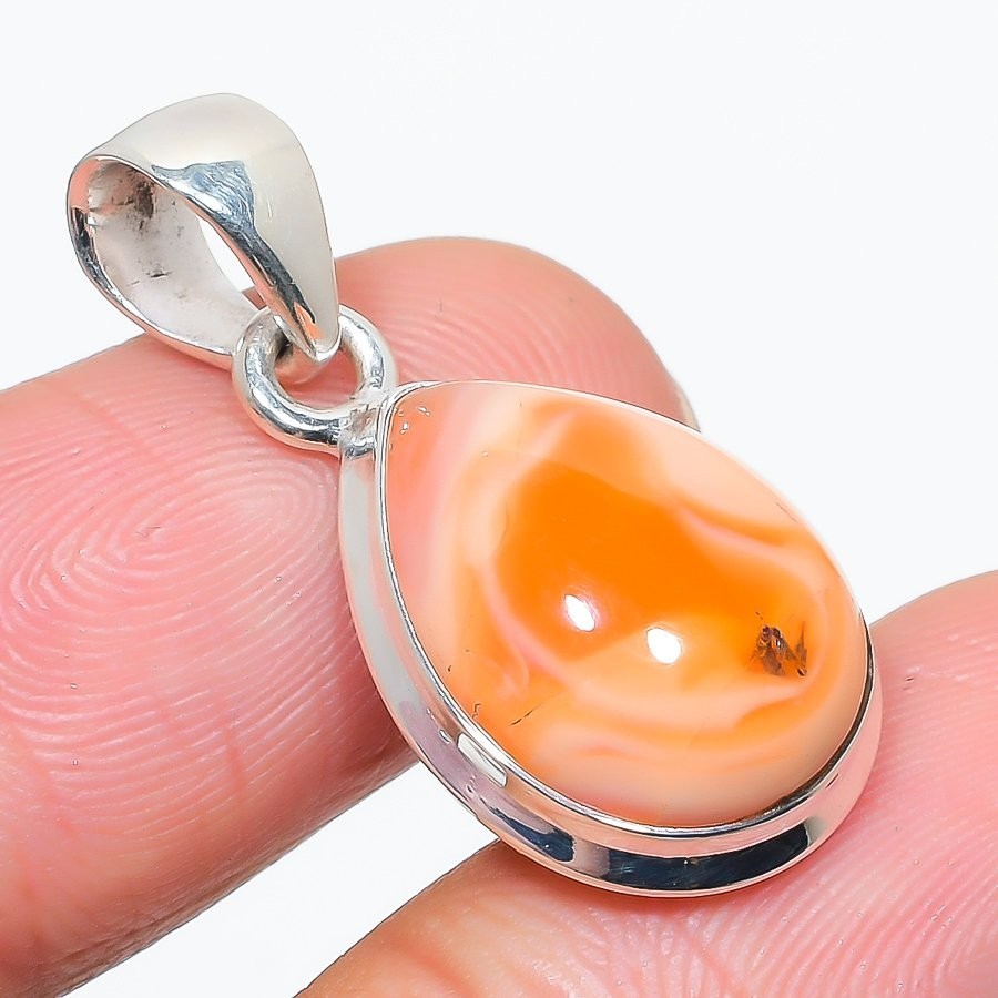 Orange Spiny Oyster Gemstone Engagement Wedding Pendant Jewelry Sterling Silver