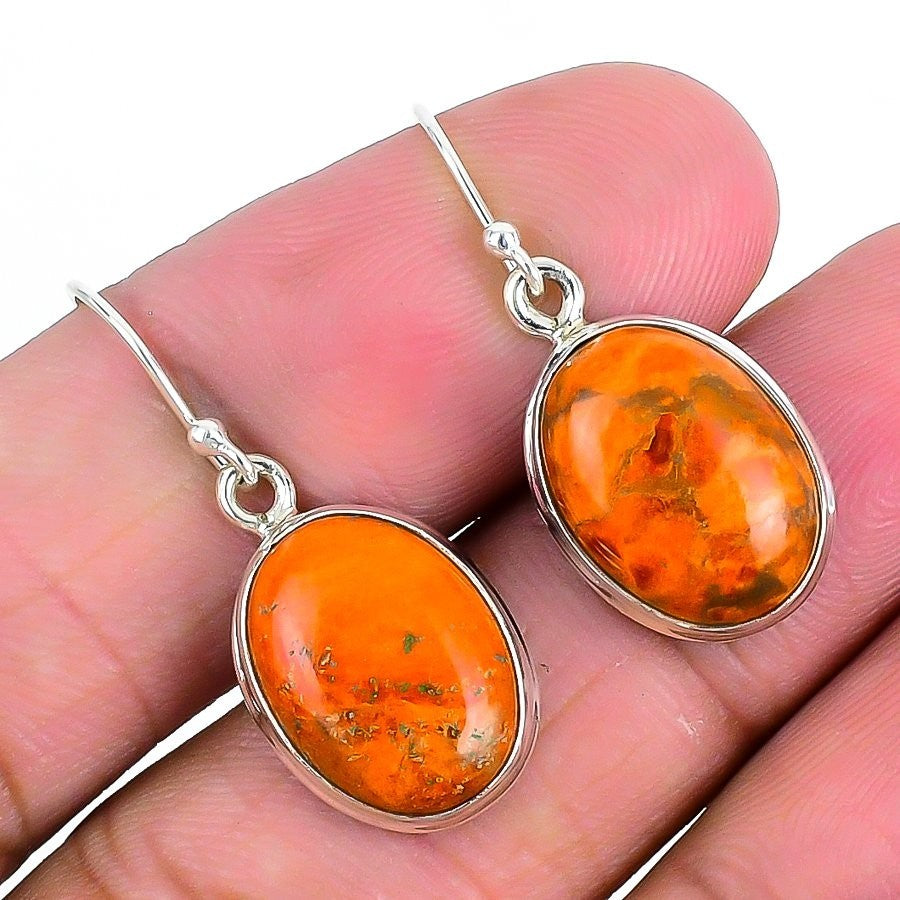 Elegant Orange Spiny Oyster Stone 925 Silver Dangling in 925