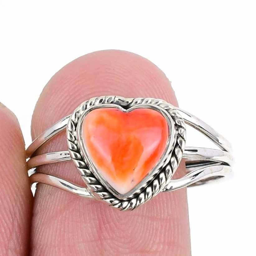 Oyster Shell Heart Gemstone Mother Cluster Ring Size 10.5 Solid Sterling Silver