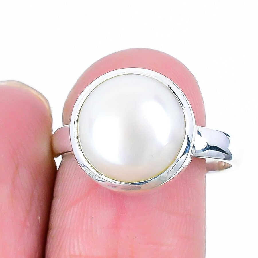 Pearl Stone Solid Sterling Silver Wedding Birthday Cluster Wife Boho Ring Size 9