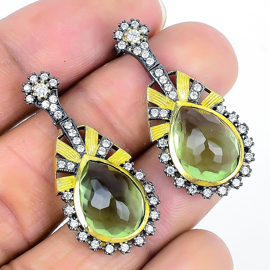 Peridot Druzy Gemstone Solid Sterling Silver Drop New Wedding Earrings Jewelry