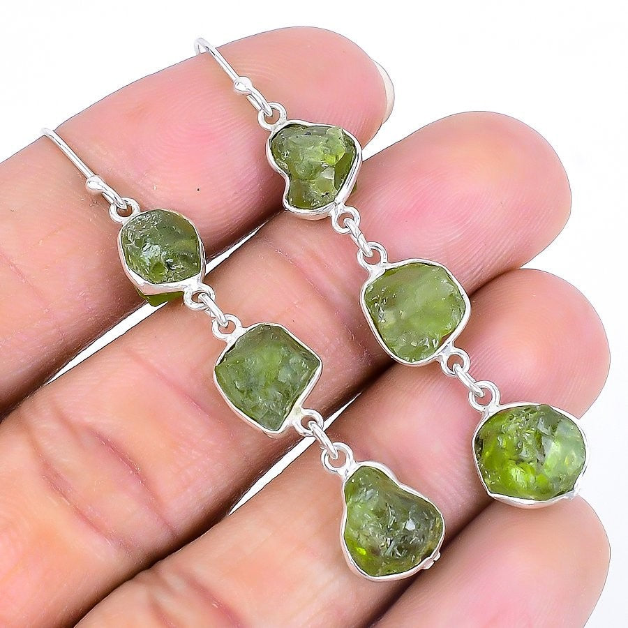 Peridot Druzy Stone Solid Silver Sister Boho Dangle Drop Hook Elegant Earrings