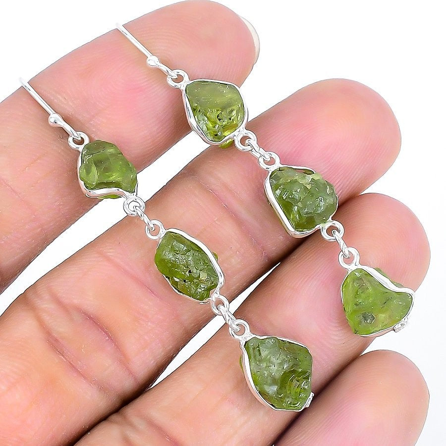 Peridot Druzy Stone Solid Silver Trendy Drop Dangle Engagement Earrings Jewelry