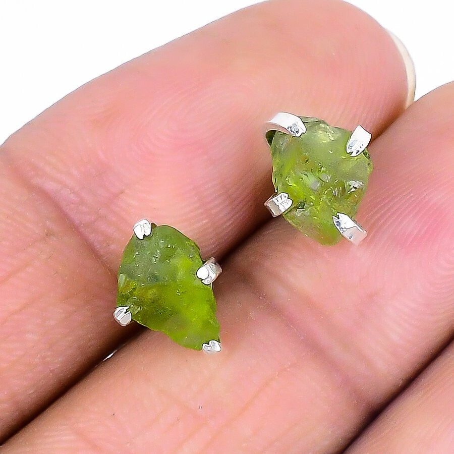 Peridot Druzy Stone Sterling Silver Engagement Drop Dangle Anniversary Earrings