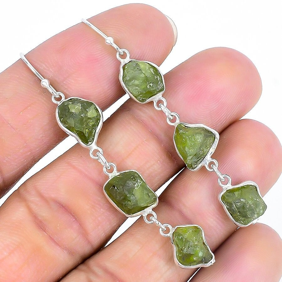 Peridot Druzy Stone Sterling Silver Handcrafted Birthday Dangle Drop Earrings