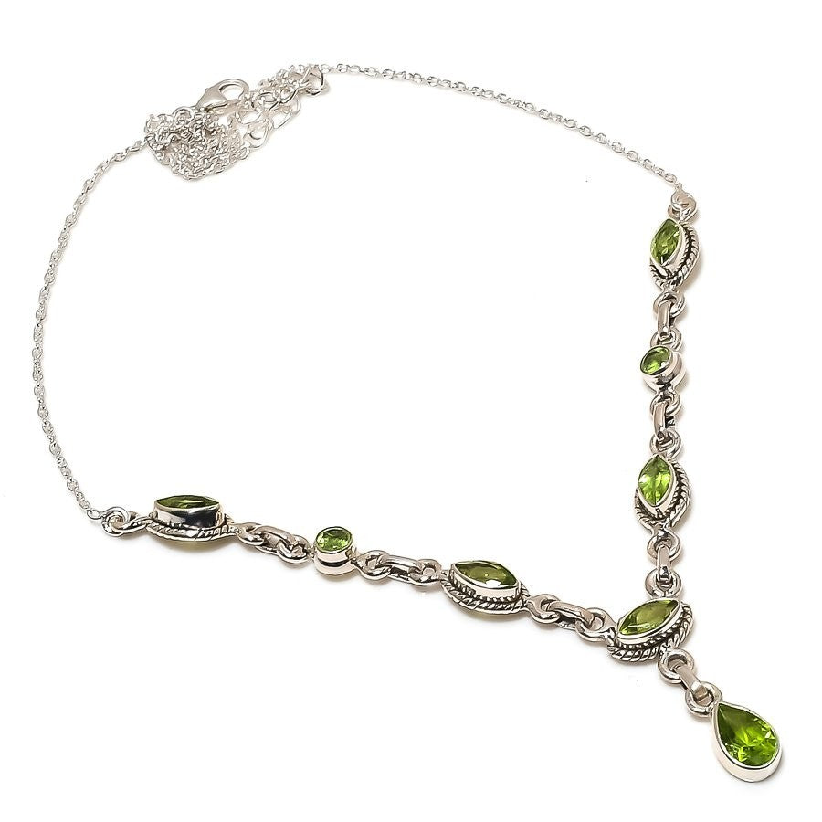 Elegant Peridot Faceted Gemstone Solid Silver Chain Annivers