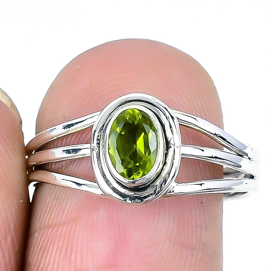 Elegant Peridot Faceted Stone Sterling Silver Statement Anni