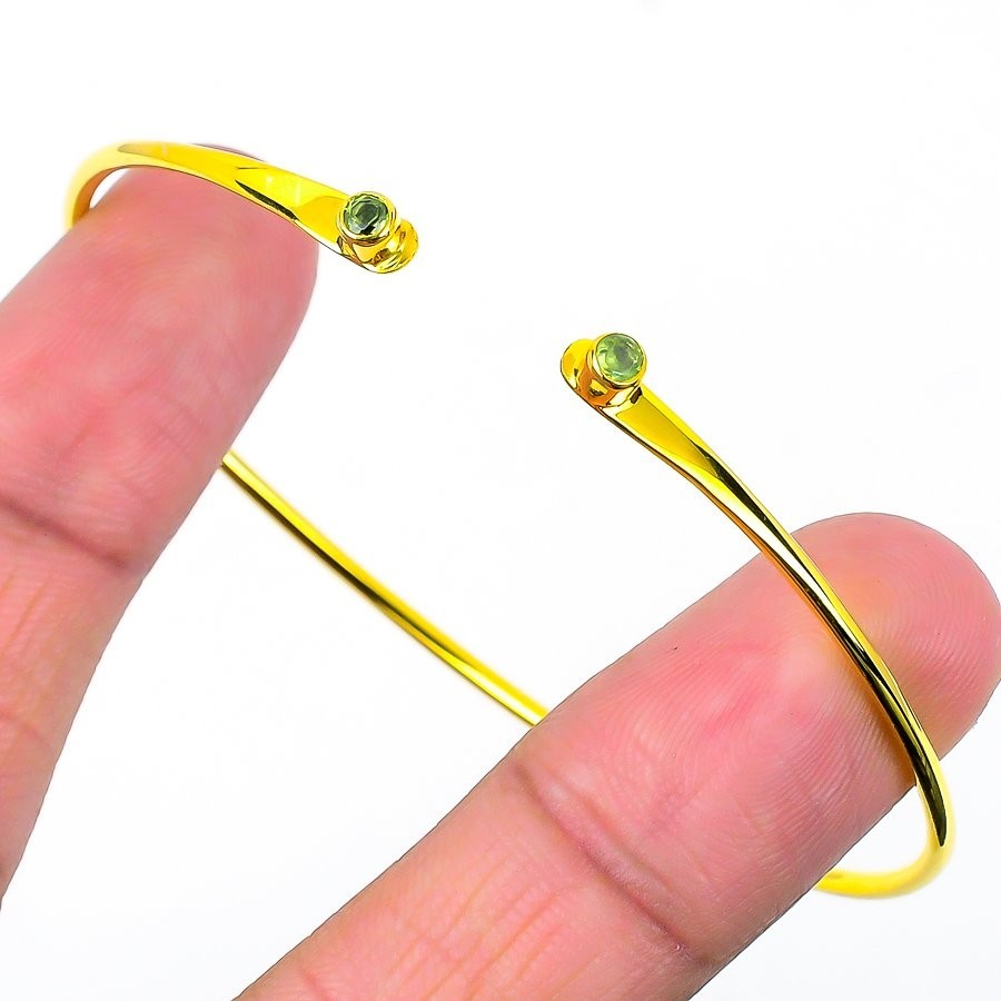 Peridot Gemstone 925 Silver Heart Chakra Daughters Day Sister Trendy Bangle Cuff