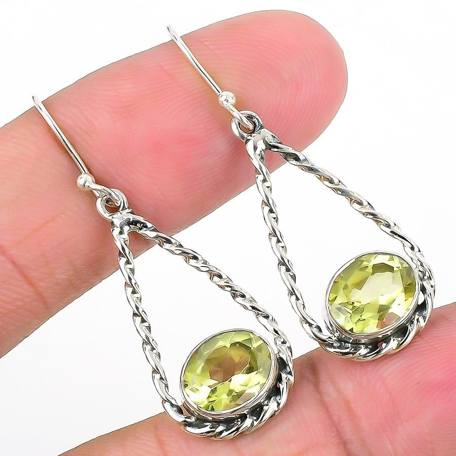 Peridot Gemstone 925 Solid Silver New Drop Dangle Daughter Gift Earrings Jewelry