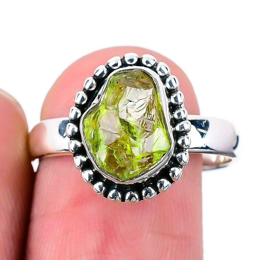Peridot Stone 925 Solid Silver Statement August Birth Trendy Ring Jewelry US 8.5