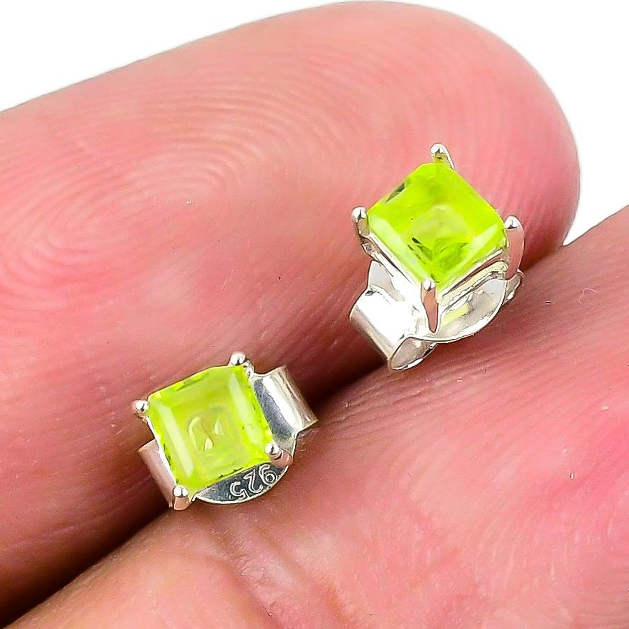 Peridot Stone Solid Silver Art Deco Stud Sister Engagement Earrings Jewelry US 7