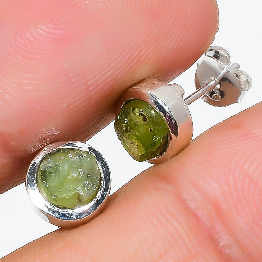 Peridot Stone Solid Silver Hook Stud Post Heart Chakra Handmade Trendy Earrings