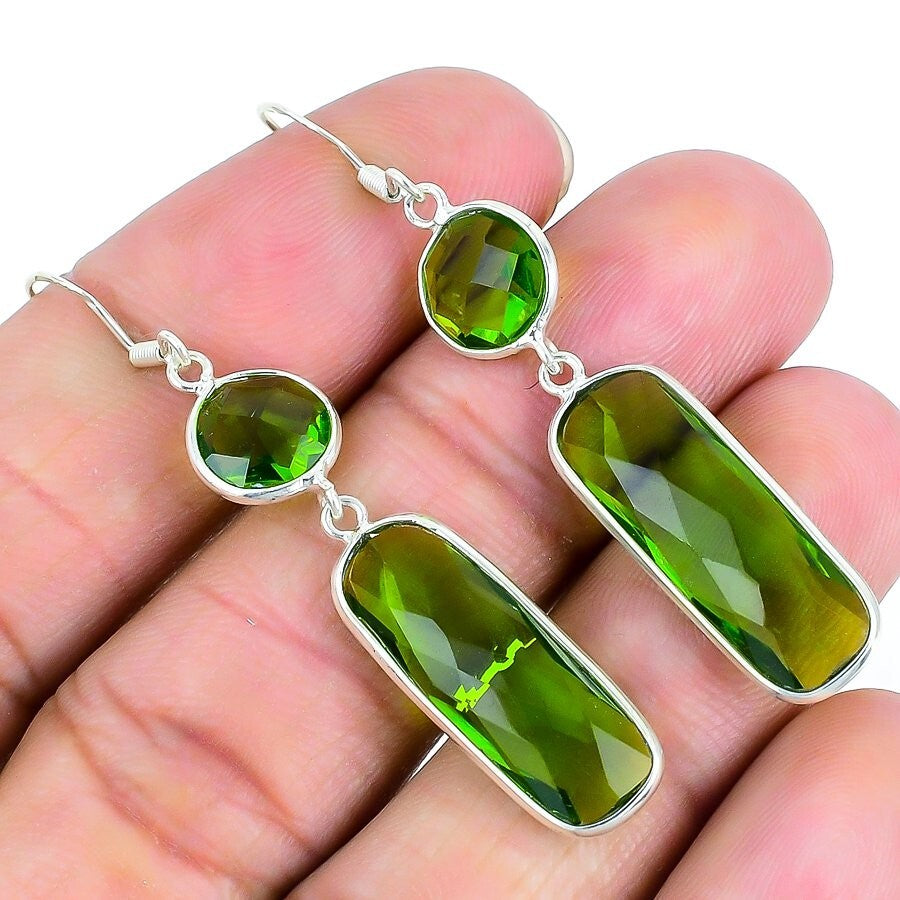 Peridot Treated Glass Gemstone Hook Birthday Dangling New Earrings 925 Silver