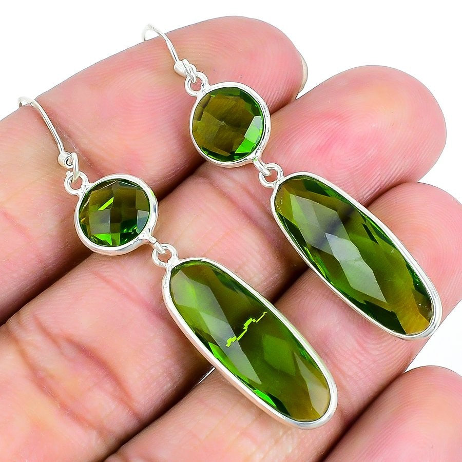 Peridot Treated Glass Gemstone Sterling Silver Hook Engagement Dangle Earrings