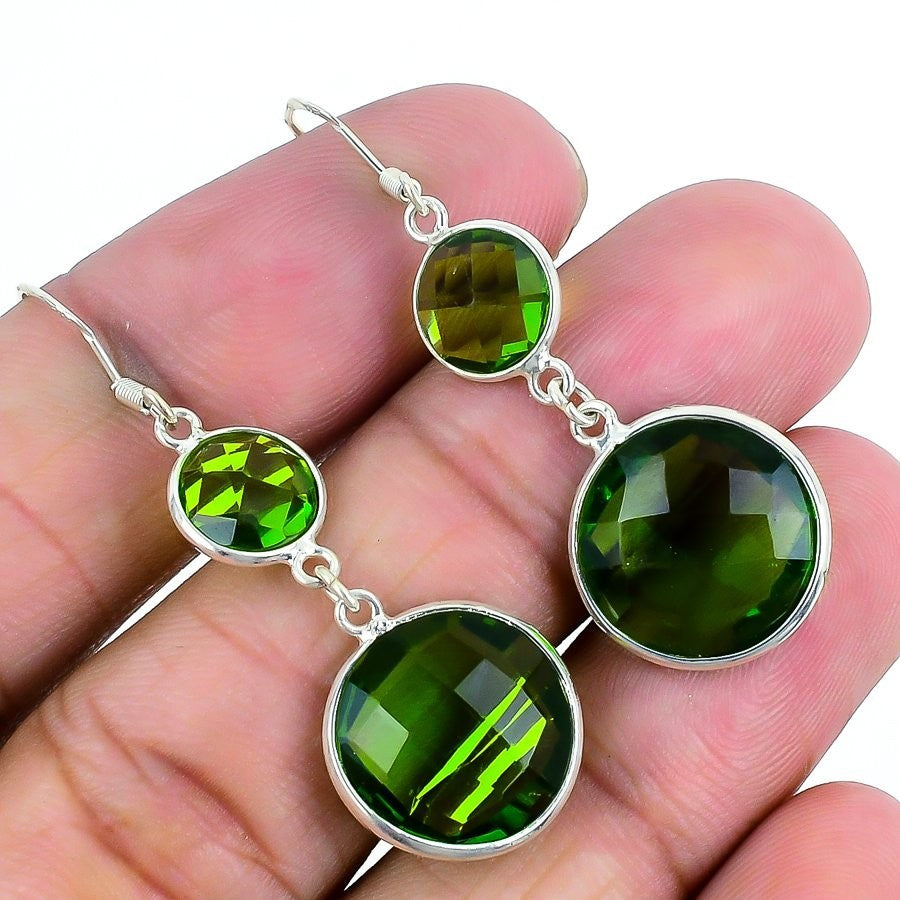 Elegant Peridot treated Stone Bezel Drop Dangle Anniversary