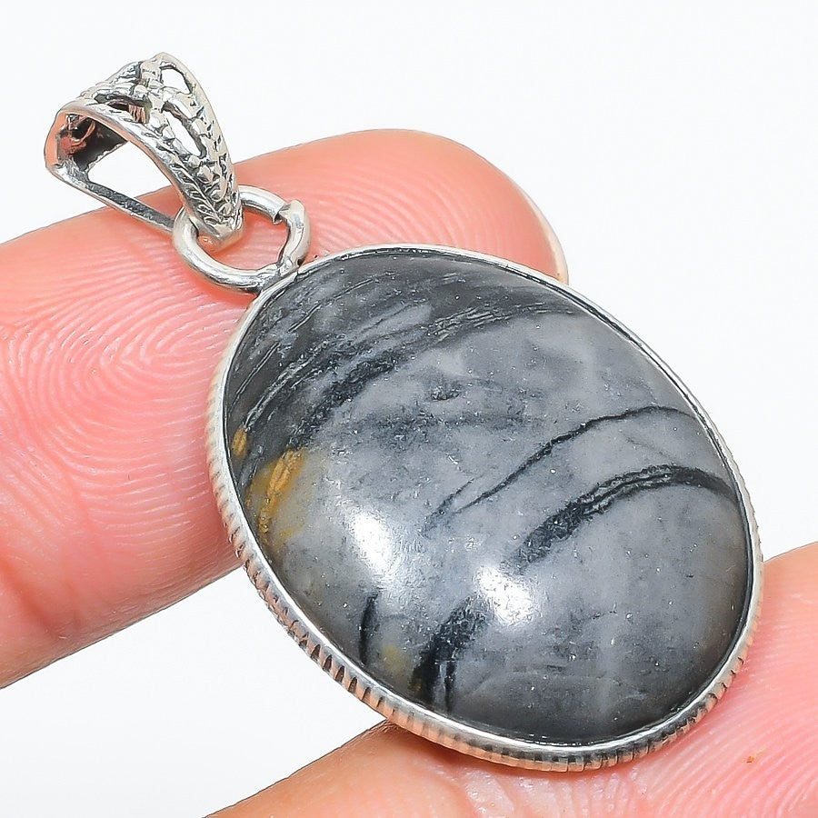 Picasso Jasper Gemstone Sterling Silver Art Deco Wedding Trendy Pendant Jewelry