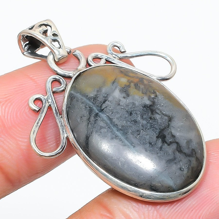 Picasso Jasper Stone Birthday Handcrafted Boho Ethnic Wife Pendant Solid Silver