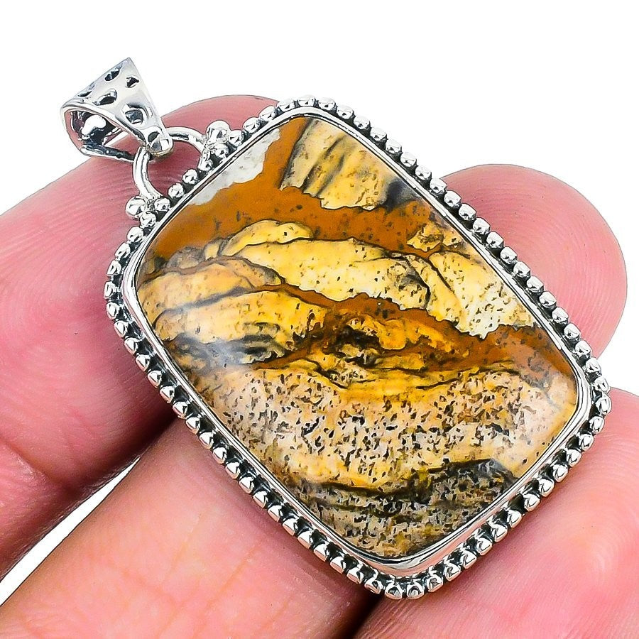 Picture Jasper Gemstone Solid Sterling Silver Daughter Bezel New Pendant Jewelry