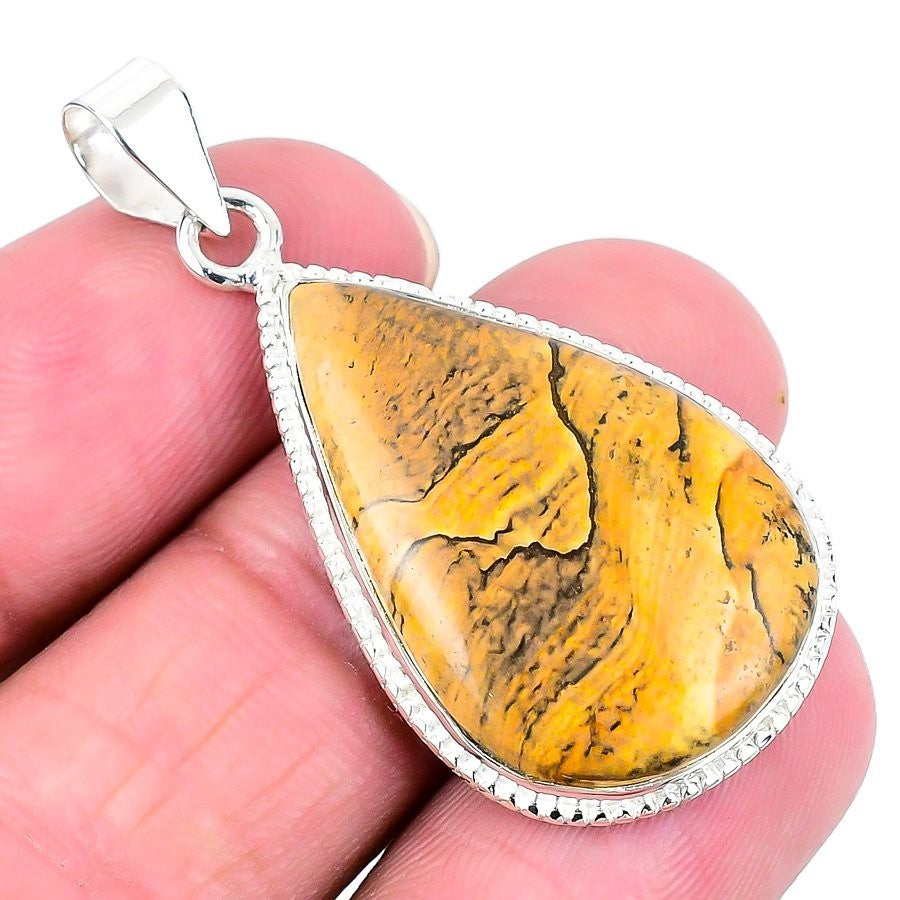 Picture Jasper Stone 925 Silver Daughter Handmade Ethnic Trendy Pendant Jewelry