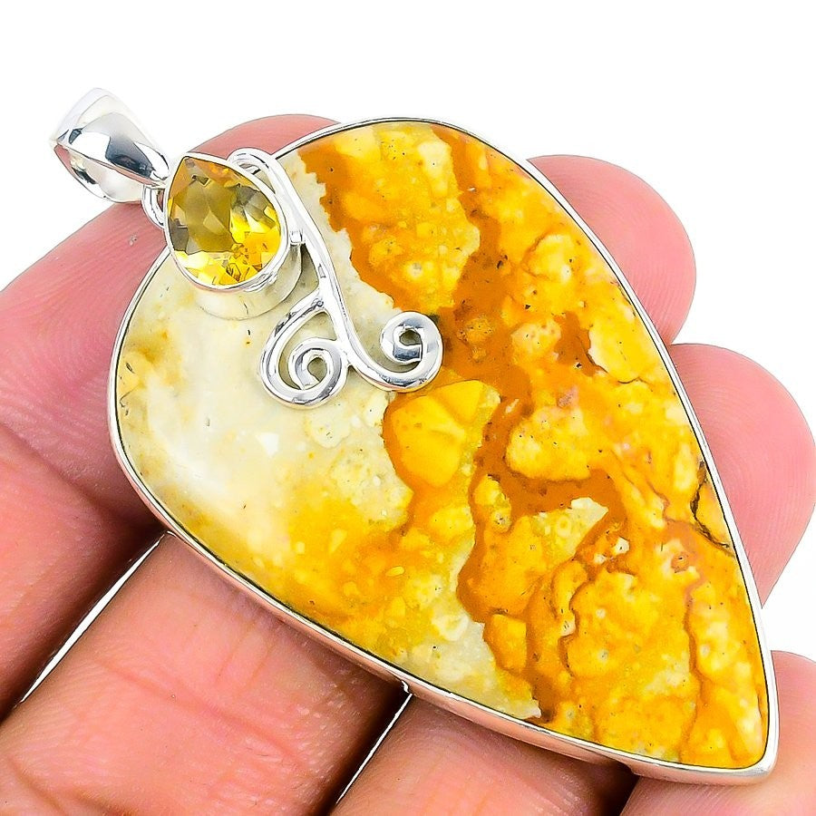 Picture Jasper Stone 925 Silver Daughters Day Artisan Handmade Pendant Jewelry