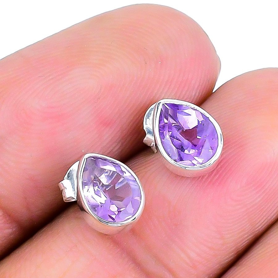 Elegant Pink Amethyst Gemstone 925 Silver Stud Ethnic in 925