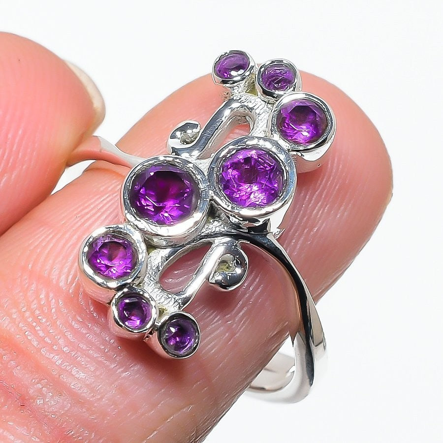 Pink Amethyst Gemstone Sterling Silver Mother February Cluster Elegant Boho Ring