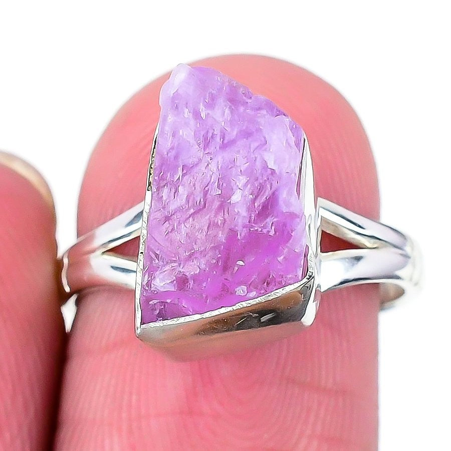 Pink Kunzite Stone Cluster Elegant Ring Jewelry Size 7.5 Solid Sterling Silver